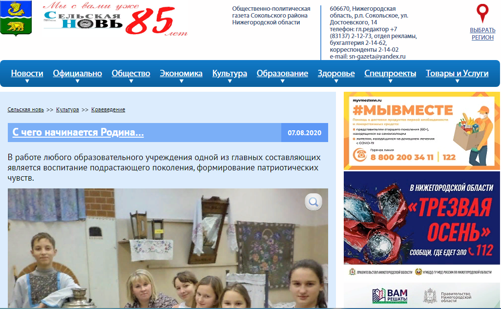 Статья о работе нашего музея в местной газете "Сельская Новь".