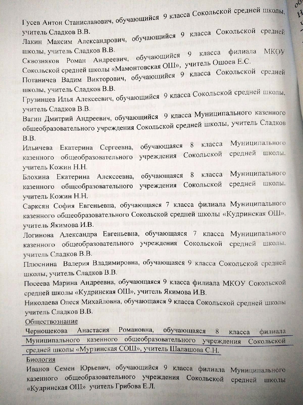 - Чернощекова Анастасия (8 класс). Участник муниципального этапа олимпиады, показавший высокие результаты по обществознанию.