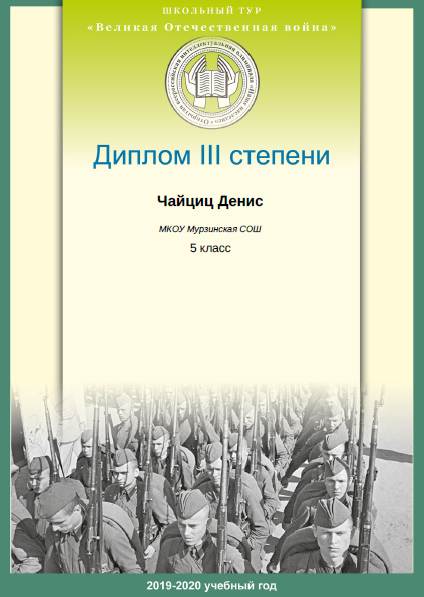 - Чайчиц Денис (5 класс). Диплом III степени международной олимпиады школьников "ОВИО "Наше наследие".