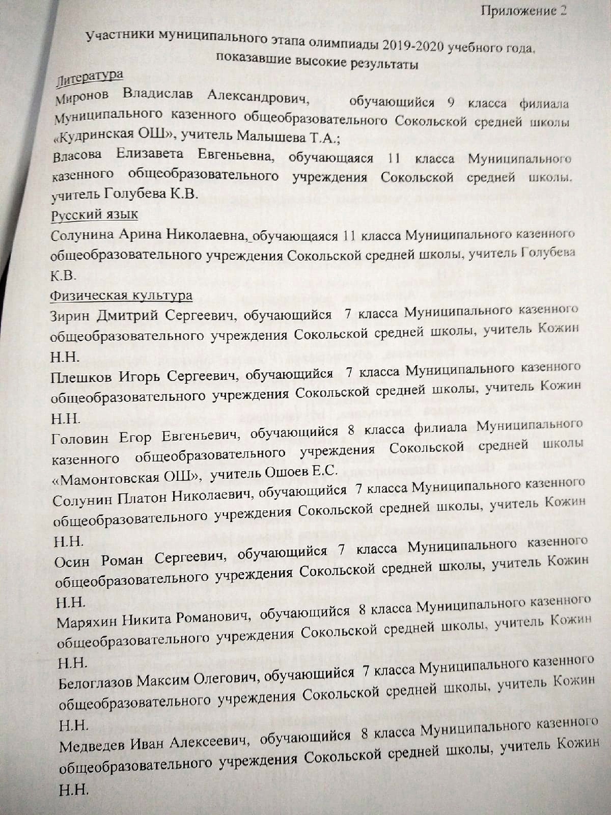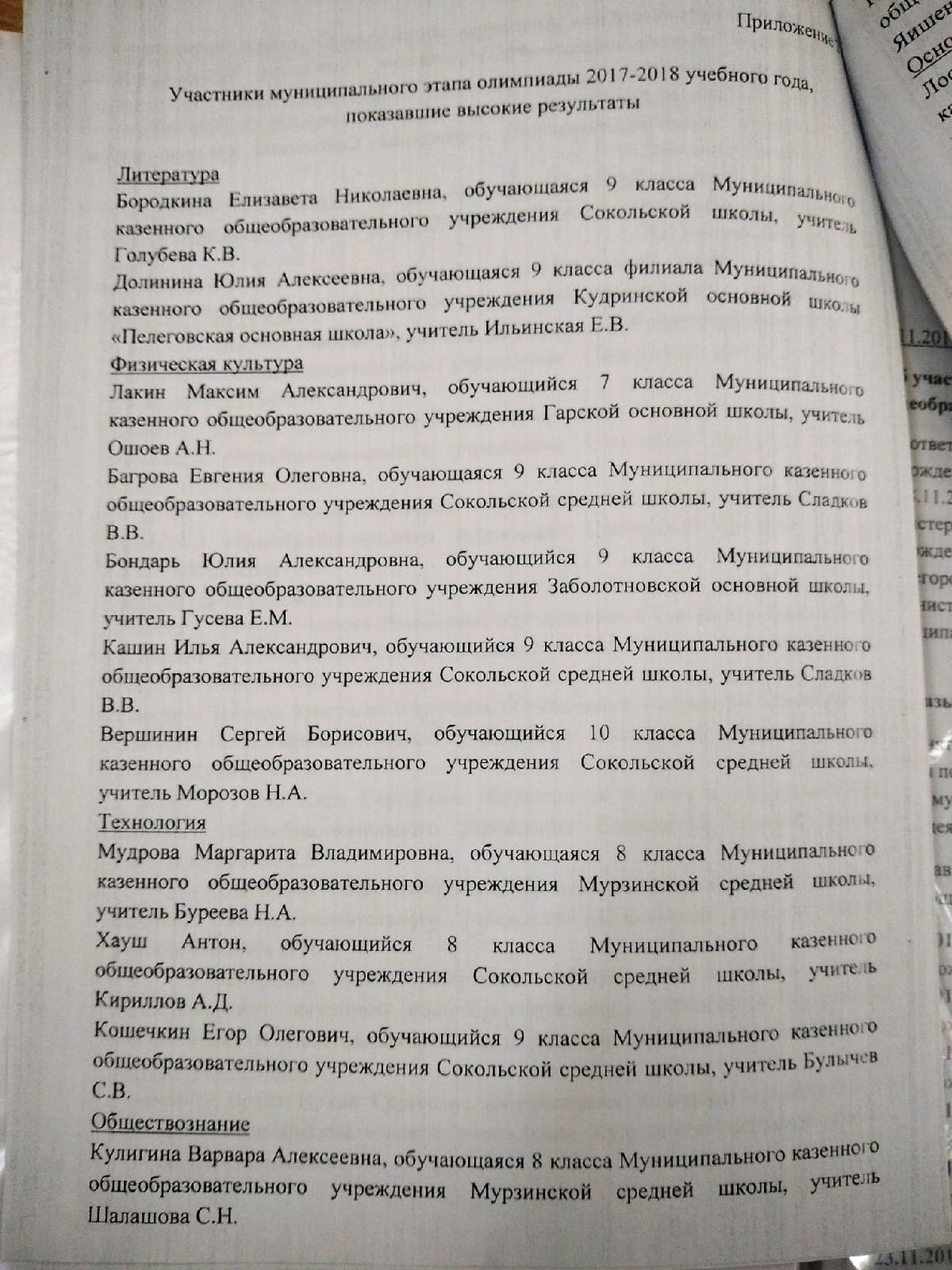 Участники муниципального этапа олимпиады школьников, показавшие высокие результаты. Лист 2.
