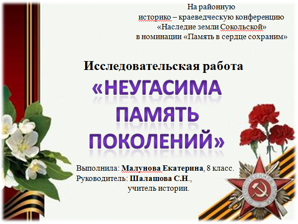 Презентация к работе "Неугасима память поколений"