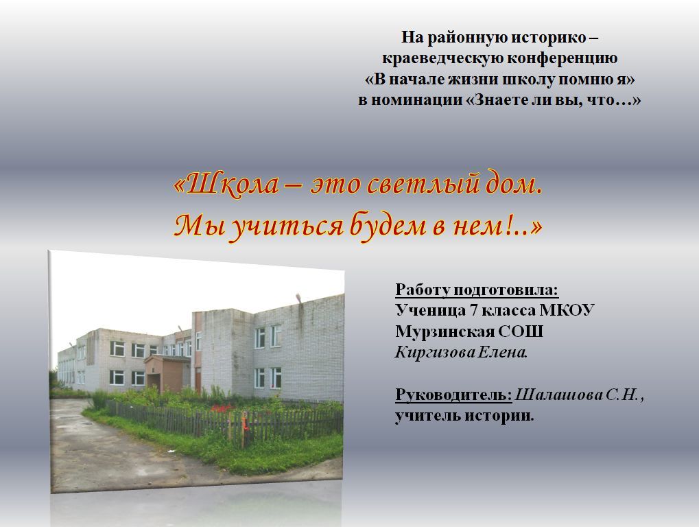 Презентация к работе "История создания школы"