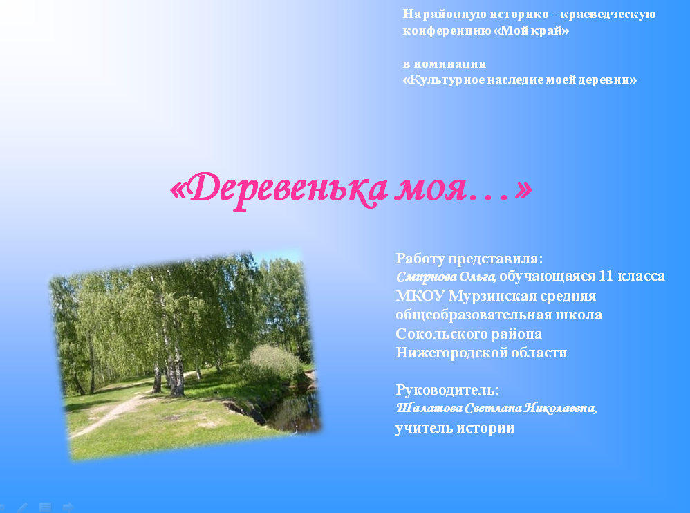 Реферат на тему "Деревенька моя". Смирнова Ольга.