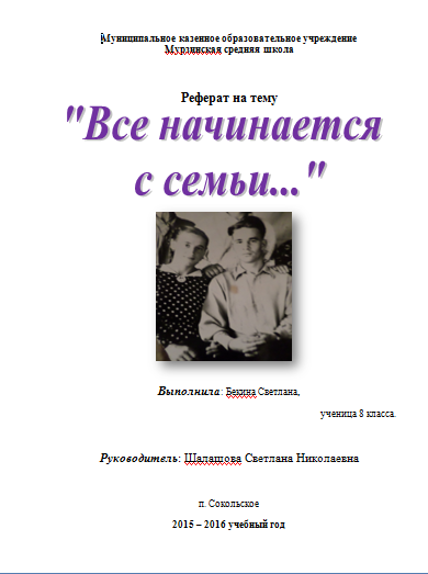 "Все начинается с семьи". Бекина Светлана.