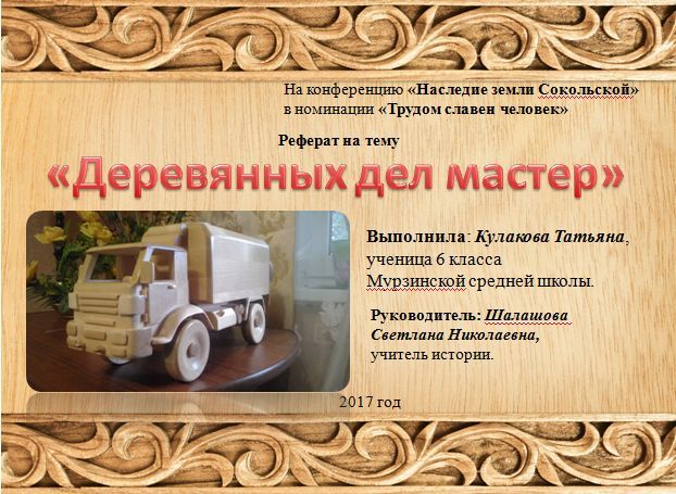 Презентация к работе "Деревянных дел мастер"